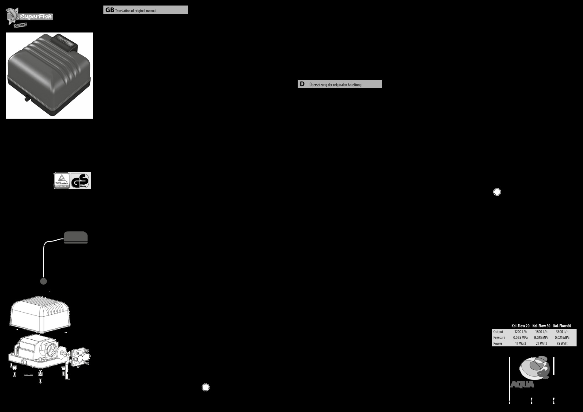 Pompe à air pour les grands bassins et bassins à Koi. 3 modèles avec un débit d'air de 20 à 60 litres par minute avec une consommation faible. Sa construction robuste assure une durée de vie longue et un niveau de bruit faible.